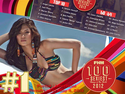 FHM Philippines has released first update for its 100 Sexiest Women in the World 2012 voting. The first voting update for FHM Philippines’ 100 Sexiest Women 2012 Poll was released Friday, May 4, 2012, more than a month after the poll started in April 1 and almost a month before it closes on June 5.