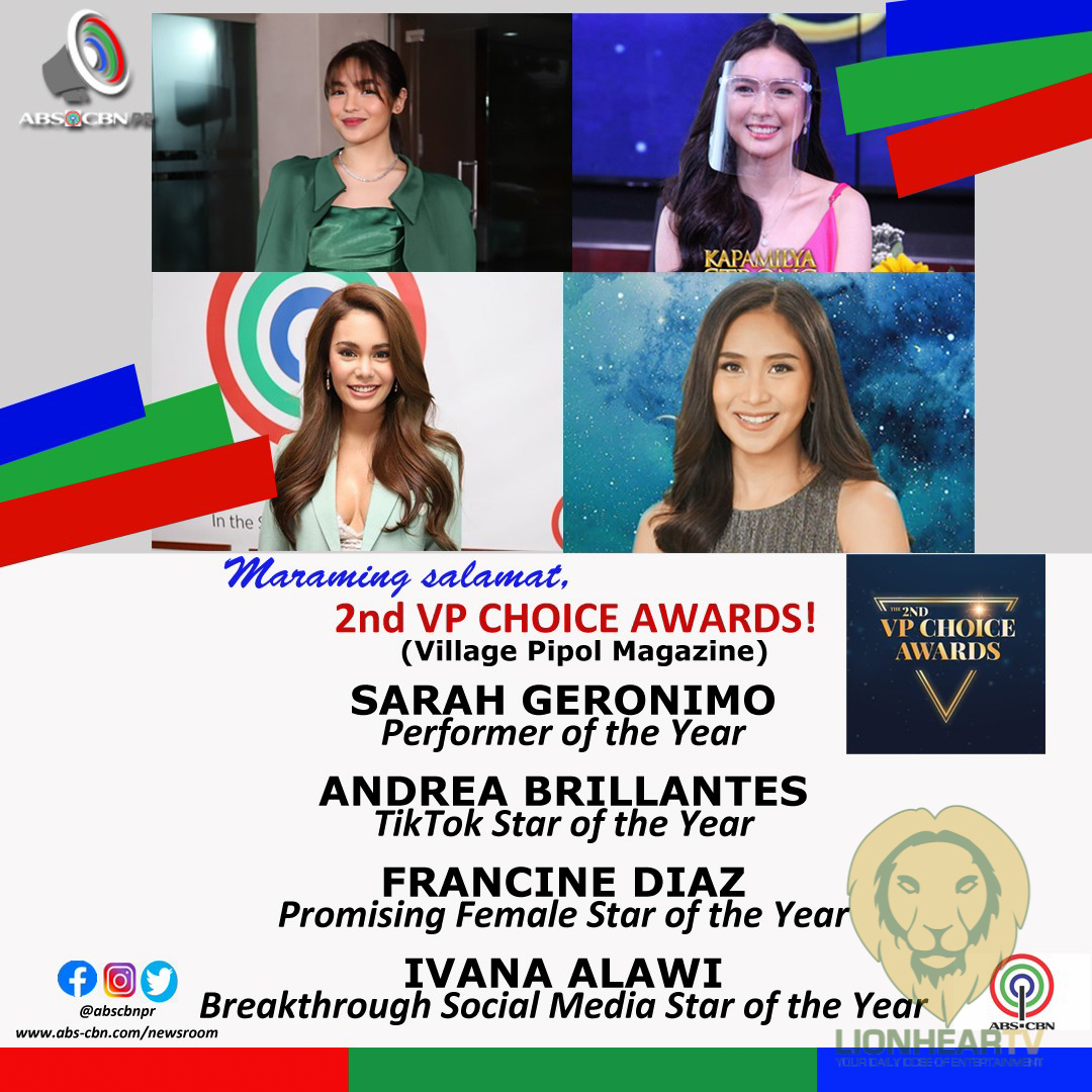 Rounding up the individual winners are awardees from ABS-CBN are “Fan Girl” star Charlie Dizon (Movie Actress of the Year), Andrea Brillantes (TikTok Star of the Year), Ivana Alawi (Breakthrough Social Media Star of the Year), Sarah Geronimo (Performer of the Year), and Francine (Promising Female Star of the Year).