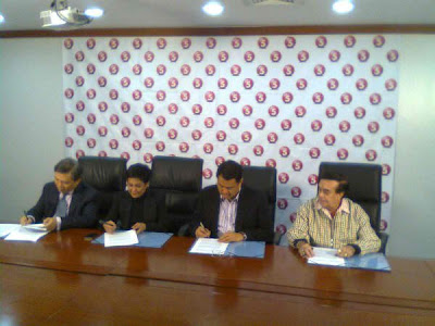 Present at the signing are TV5 President Rey Espinosa,