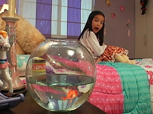 In “Pam Pabaya at ang Mahiwagang Gold Fish,” Xyriel takes on the role of Pam, a girl who neglects all of her pets because of her longing for her overseas working mother. When she receives a magical goldfish producing golden pellets, Pam overuses her pet’s extraordinary ability thinking that wealth will make her family whole again.