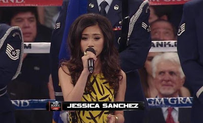 American Idol 2012 first runner-up Jessica Sanchez performed during the Manny Pacquiao vs. Timothy Bradley – World Welterweight Championship, held in Las Vegas, Nevada on Sunday, June 9, 2012, and sang the American national anthem, as shown in the video below.