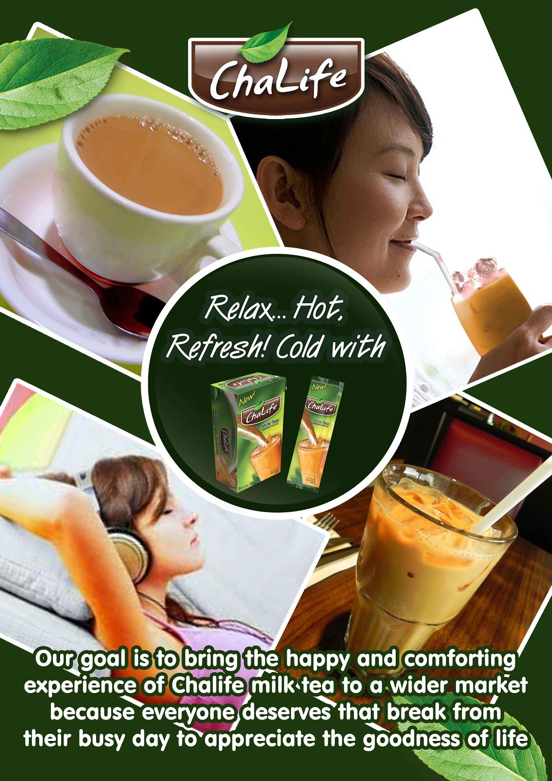 Take time to sit down, relax and be refreshed with its smooth and aromatic blend of milk and tea flavors. ChaLife may be enjoyed hot while reading a good book at home or cold during break time. ChaLife Milk Tea will surely comfort your mind and body.