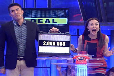 Celebrity player Gretchen Barretto was the first to play in the anniversary special where she entered into a deal with the Banker who offered her P747,600. She could have walked away with the P2 million jackpot though if she had resisted the offer and stuck to her chosen briefcase.