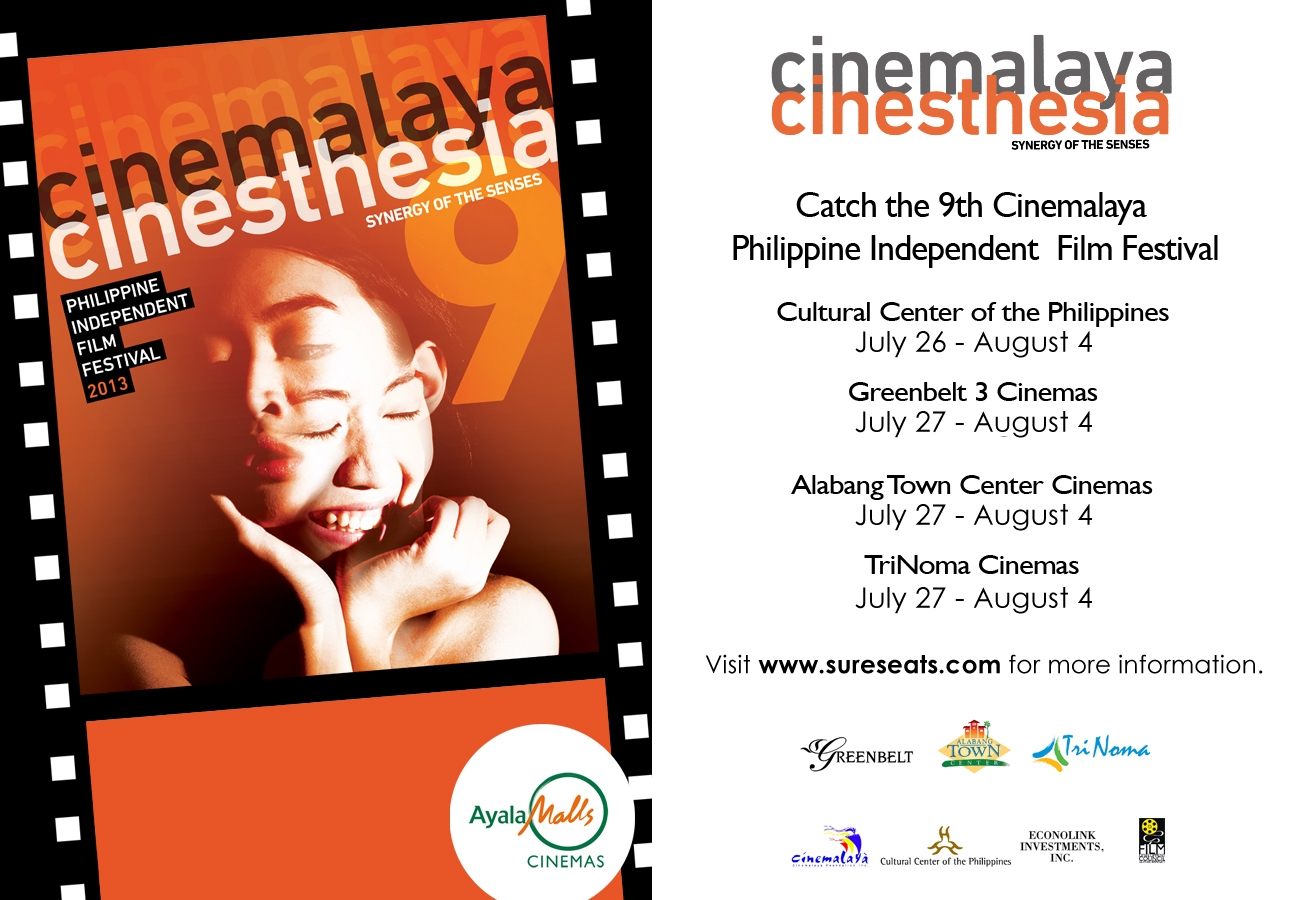 Cinemalaya entries will open in three Ayala Malls Cinemas – Greenbelt3, Trinoma and Alabang Town Center starting July 27 until August 4. Check out www.sureseats.com for schedule.