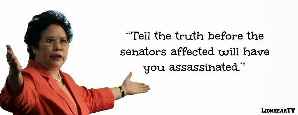 “Tell the truth before the senators affected will have you assassinated.” – Sen. Miriam Defensor Santiago