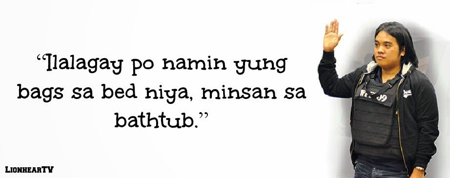 To imagine the amount of money involved in the Pork Barrel Scam, star witness Benhur Luy describe how they delivered the money to the house of his former boss, Janet Lim Napoles. For privacy’s sake, it’s normal that people would have cash delivered to their room. But in a bathtub? That’s living like a queen. Wishing that the money in the bathtub stayed dry.