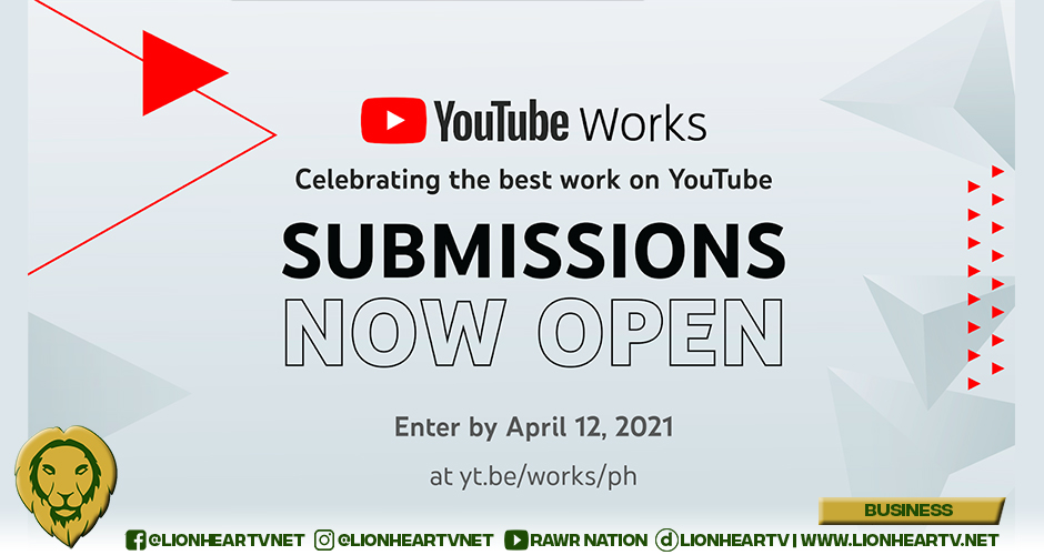 To enter the YouTube Works awards, submit entries at https://yt.be/works/ph. The eligibility period is from January 1 to December 31, 2020.