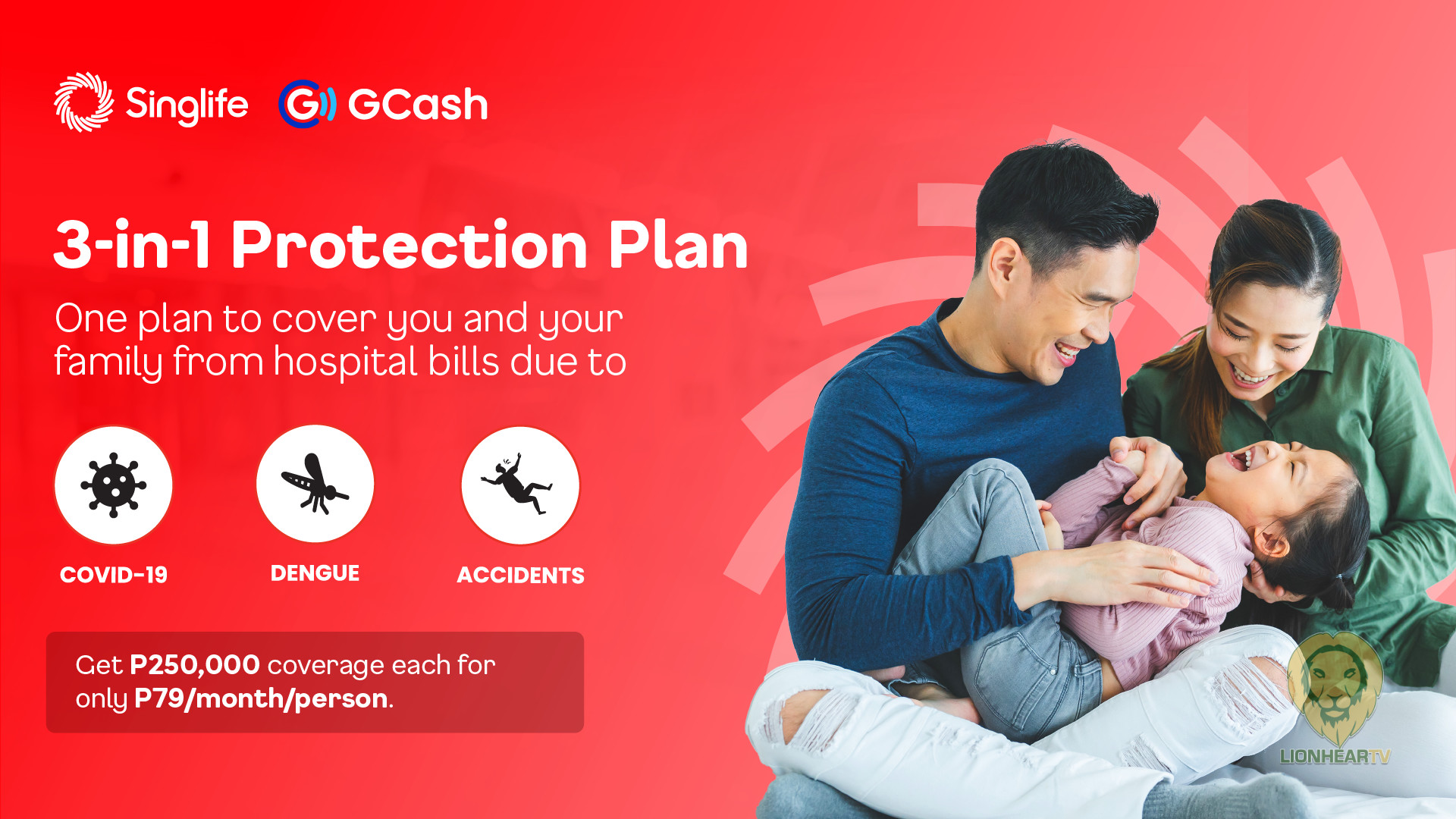Today, Singlife launched the 3-in-1 Protection Plan which provides meaningful coverage for medical bills due to Dengue, COVID-19, and accidents at a price that fits your budget. Plans start with P250,000 coverage each per family member for only P79/month per person.