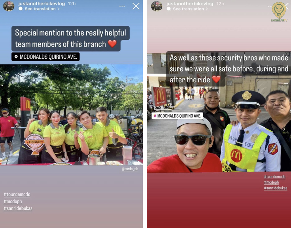Just Another Bike Vlog (@justanotherbikevlog), one of the participating vloggers in Tour de McDo, shared via Instagram Story how the crew and security personnel of McDonald’s Quirino Ave. made the event more successful by looking after everyone’s safety throughout the ride. Stores were also equipped with bike repair stations to ensure cyclists enjoyed uninterrupted travel.