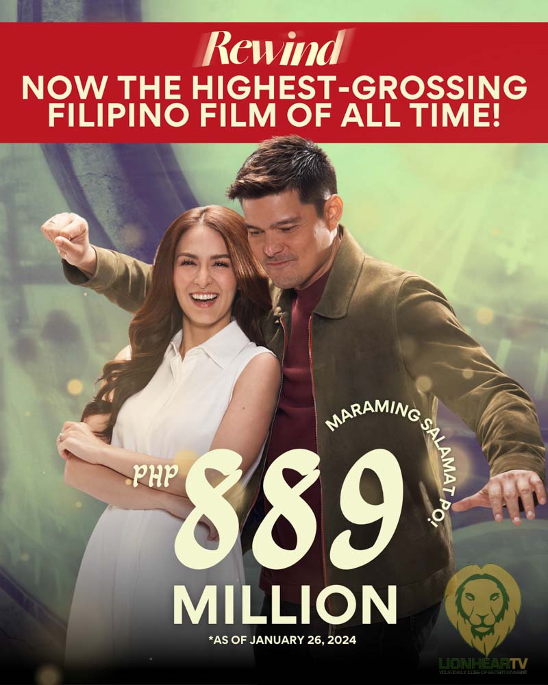 Star Cinema’s family-drama hit “Rewind” achieves another all-time feat as the highest-grossing Filipino film, garnering over P889 million sales globally as of January 26, 2024.