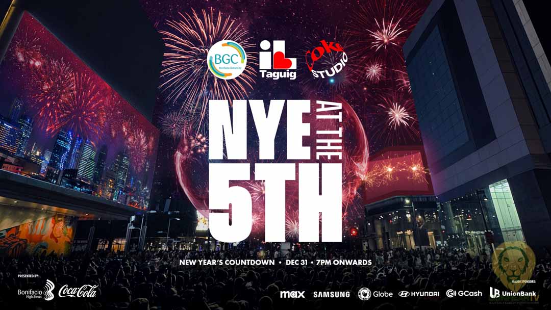 NYE at the 5th is brought to you by Bonifacio Global City and the City of Taguig, presented by Coke Studio; and with the support and partnership of Max, Samsung, Globe, Hyundai, GCash, and UnionBank.
