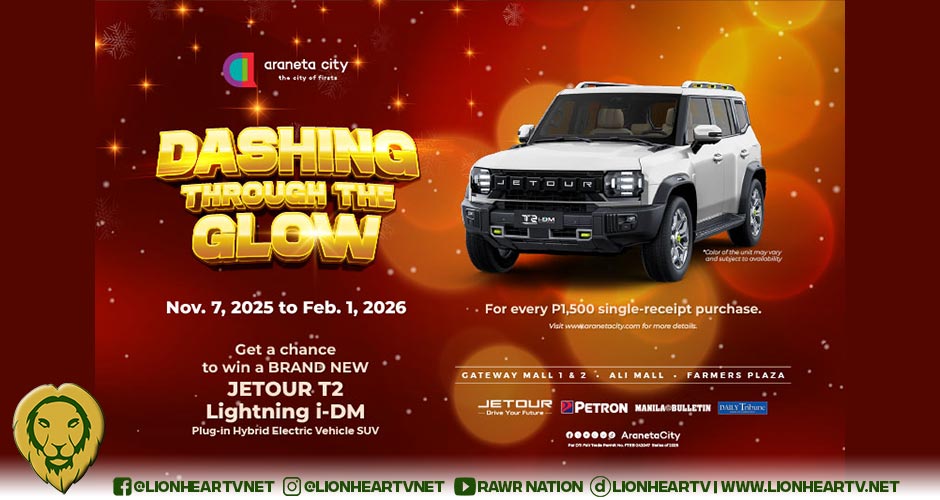 The Dashing Through the Glow car raffle promo gives one lucky Araneta City-zen the chance to bring home a brand-new Jetour T2 Lightning iDM Plug-in Hybrid Electric Vehicle. A single-receipt purchase worth ₱1,500 from participating establishments qualifies for an e-raffle entry. This includes receipts from Gateway Mall 1, Gateway Mall 2, Ali Mall, Farmers Plaza, Farmers Market Arcade, Farmers Garden, and other commercial establishments across the City of Firsts.
