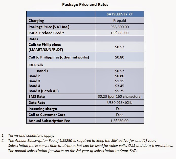 On the other hand, SMS service costs $0.23 per message, while data service is charged $0.015 for every 10kb. Contacting the customer care hotline on satellite mode is free of charge. Prepaid load cards will be available to subscribers to maintain the satellite services.
